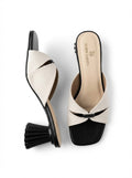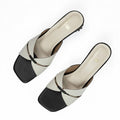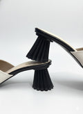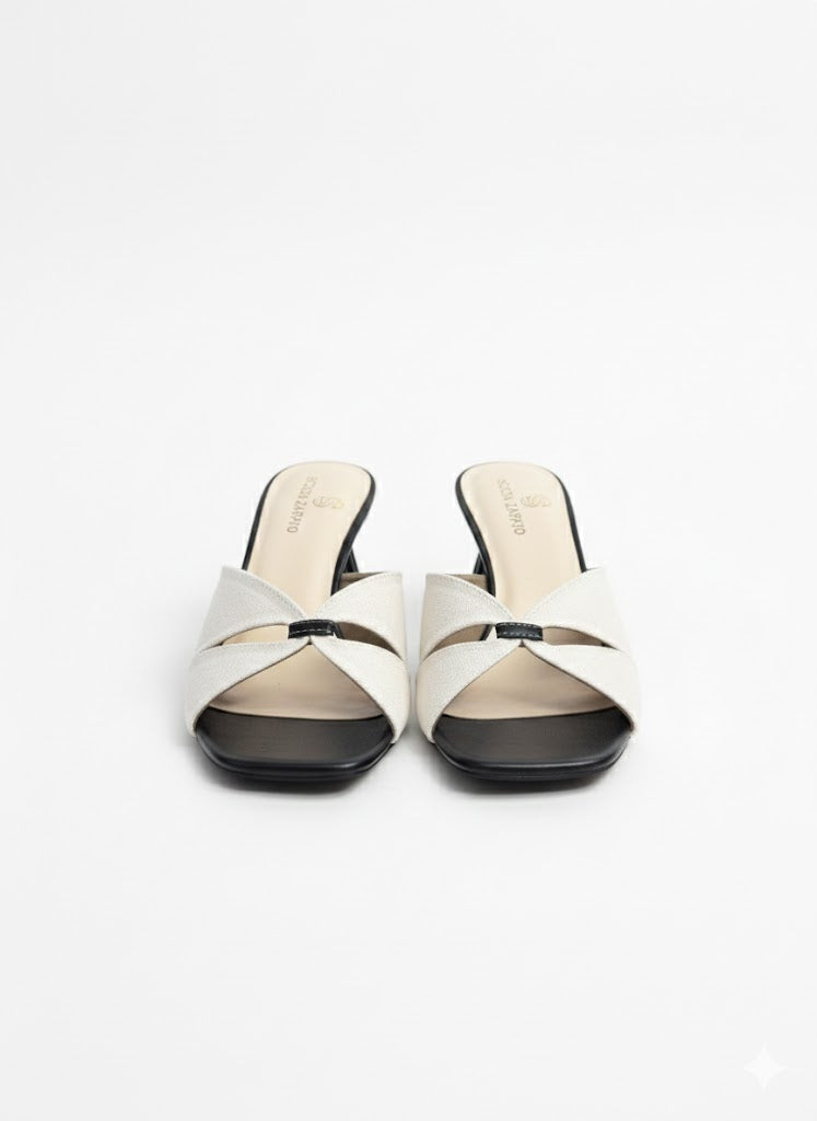 Schon Zapato presents a stunning 2-inch heel with a canvas upper elegantly stitched alongside black woven leather. The standout feature is its uniquely designed heel that blends a classy look with exceptional comfort, giving the support of a block heel. The beige and black palette adds to its versatility, making it the perfect choice for any outfit or occasion.