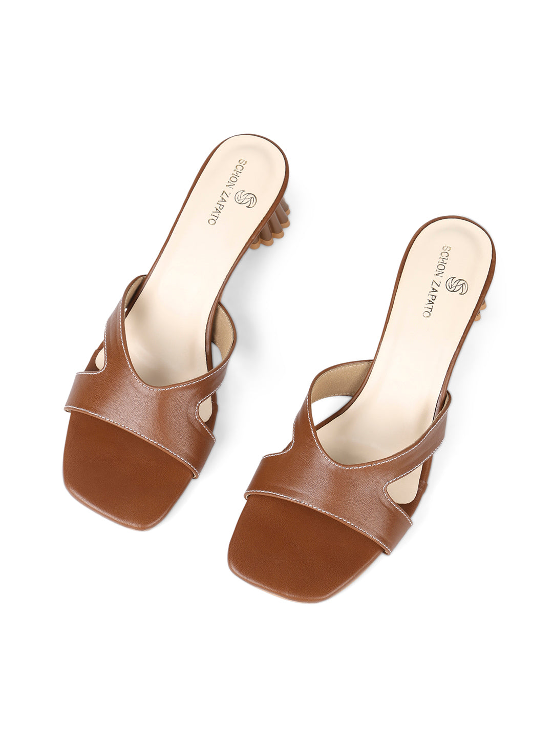 Say hello to your new go-to heels! These brown slip-ons come with stylish cut-out straps and a unique pleated block heel that gives them a bold twist. Super comfy and super versatile — you can wear them to work, brunch, or even an evening out.