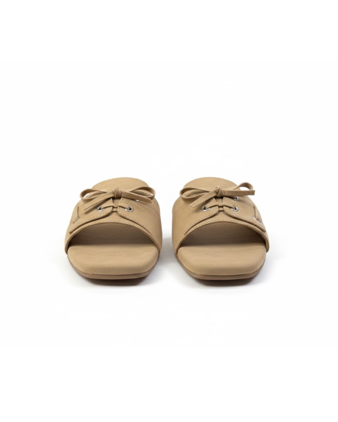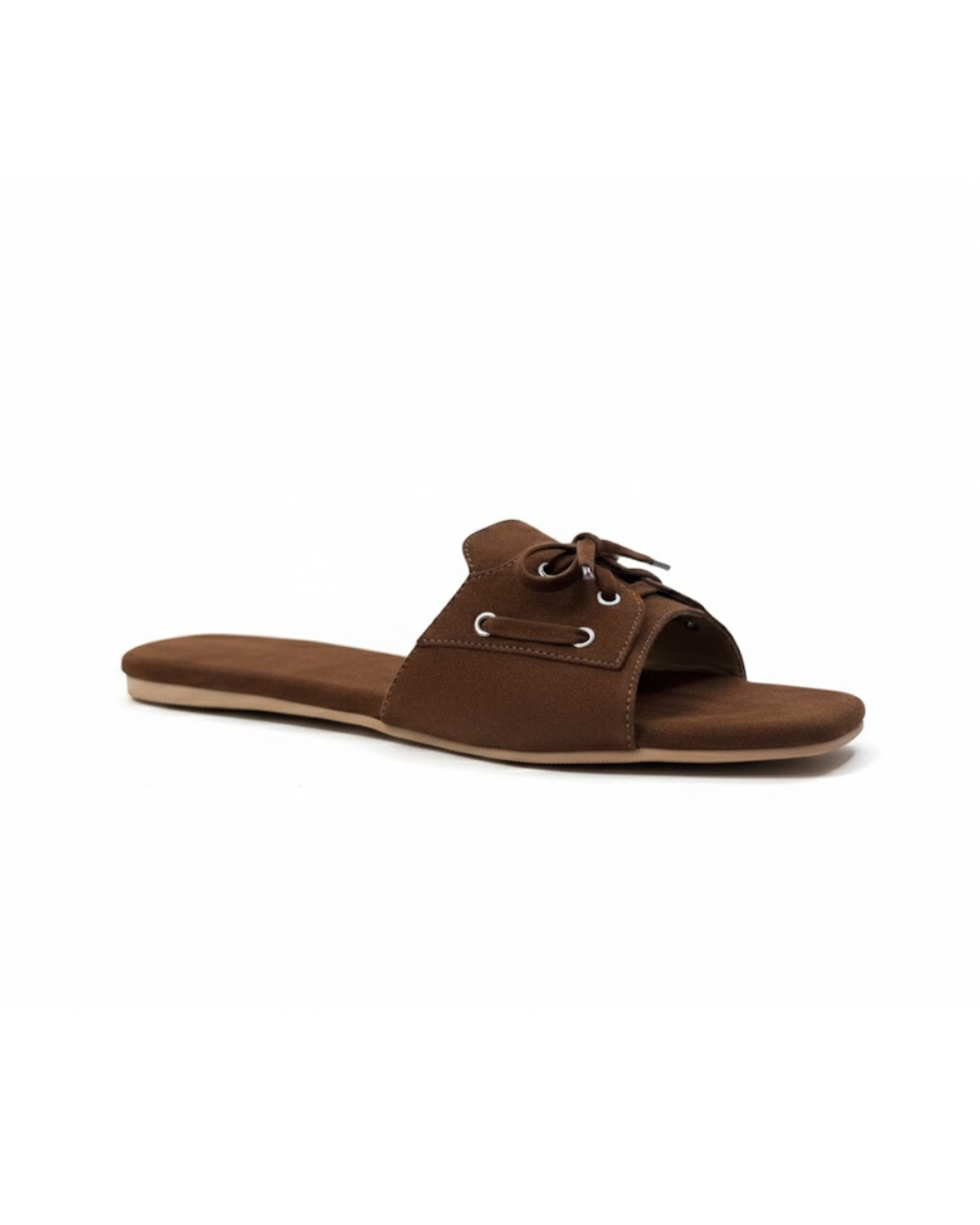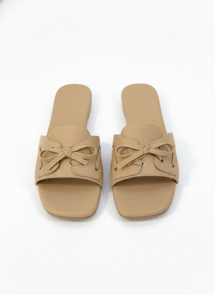 These brown and beige slide flats come with a shoe-style tie-up detail on top, giving them a unique and stylish look. Made with a soft suede-finish upper, they feel comfortable and easy to wear. The cushioned sole supports all-day use without discomfort. Simple to slip on and easy to pair with casual or dressy outfits