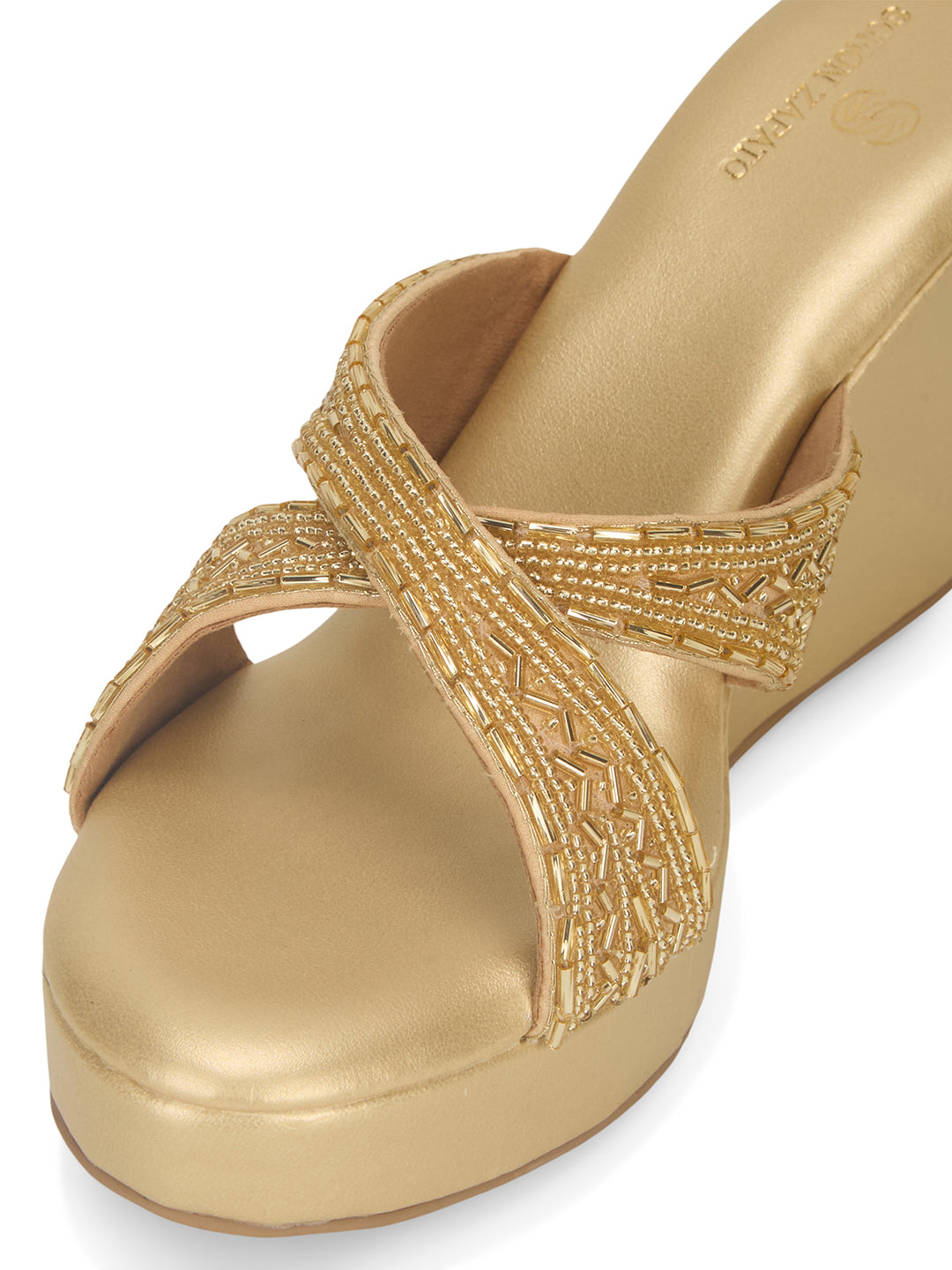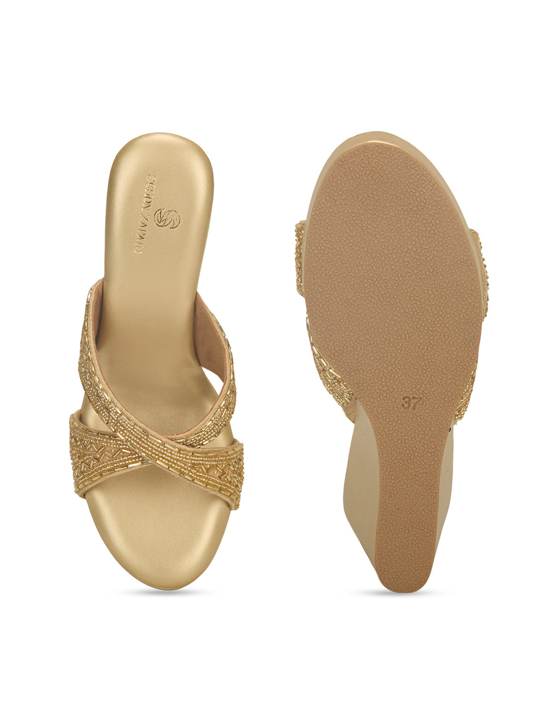 Step into festive luxury with our Embroidery gold wedges, where comfort meets sophistication. The intricate golden handwork paired with soft cushioned soles makes these heels your go-to for celebrations that last all day (and night). Lightweight, graceful, and timeless — they’re made to shine with you.