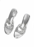 Our Quirky silver heels are a perfect blend of tradition and modern glamour. The handwoven straps in metallic silver create a stunning play of texture and light, while the sleek silhouette ensures timeless elegance. Designed for both comfort and statement style, these heels are your go-to for festivities, weddings, and elegant evenings