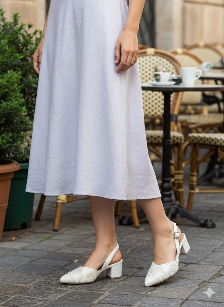 These elegant shoes are a classic example of vintage-inspired mule perfect evening footwear. They strike a lovely balance between delicate detail and practical comfort.